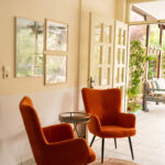 Earthy tones and twin beds in a minimal, bright space made for restful moments
